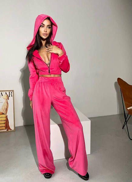 Модний велюровий костюм з укороченою кофтою і широкими штанами