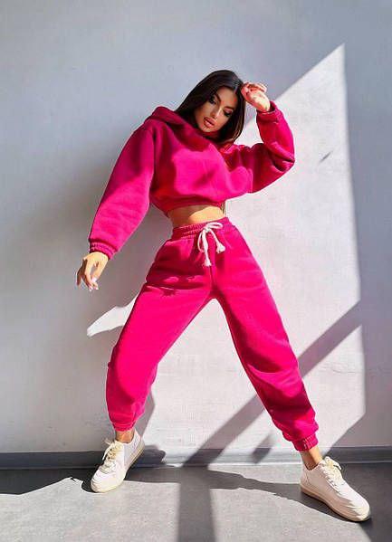 Модний жіночий костюм зимовий з укороченою худі
