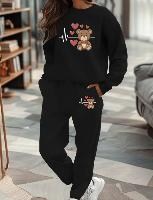 Теплий жіночий костюм з принтом "Ведмедик з сердечками"